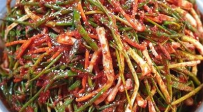 건고추 150g을 잘라서 씨를 털어내고 물 3컵에 2시간 동안 불려요. 건고추 불린물은 절대 버리지마세요. 믹서에 배, 사과, 양파 각각 150g과 생강 20g, 멥쌀밥 반 컵, 멸치액젓 1컵 반을 넣고 곱게 갑니다. 불린 건고추와 건고추 물을 넣고 굵직하게 갑니다. 넓찍한 볼에 믹서에 간 내용물을 덜어내고 고운고추가루 1컵, 설탕 2 큰술, 통깨 7큰술 넣고 버무려서 양념장을 만들어요. 쪽파김치 맛있게 담그는법 이제 버무리기를 할 차례입니다. 양념장에 불린 무말랭이를 넣고 버무립니다. 깨끗이 씻어서 손질한 쪽파 1.5kg에 양념장을 골고루 바릅니다.