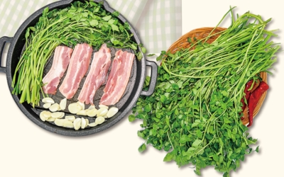 봄철 미나리는 연하고 부드러워서 생으로 먹기에도 무리가 없습니다. 식이섬유가 풍부하고 칼로리가 낮아 체중 감량에도 효과적이예요. 미나리로 나물을 할 때는 참기름을 넣으면 베타카로틴 흡수를 높게 만드는 데 좋고, 육류와 먹을 때는 무침으로 곁들여 먹게 되면 좋아요. 미나리에는 비타민A·B·C, 엽록소, 엽산, 철분 등이 풍부해 빈혈 완화와 혈액순환에 좋고, 혈액을 깨끗하게 해요.
